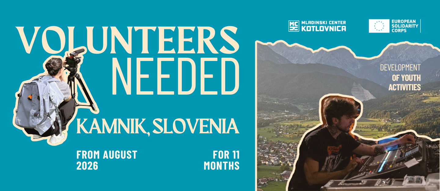 We don't have an exact application deadline but we would like you to arrive to Kamnik at the second part of July or no later than 3 August 2026 and join us as a volunteer for a period of 11 months.