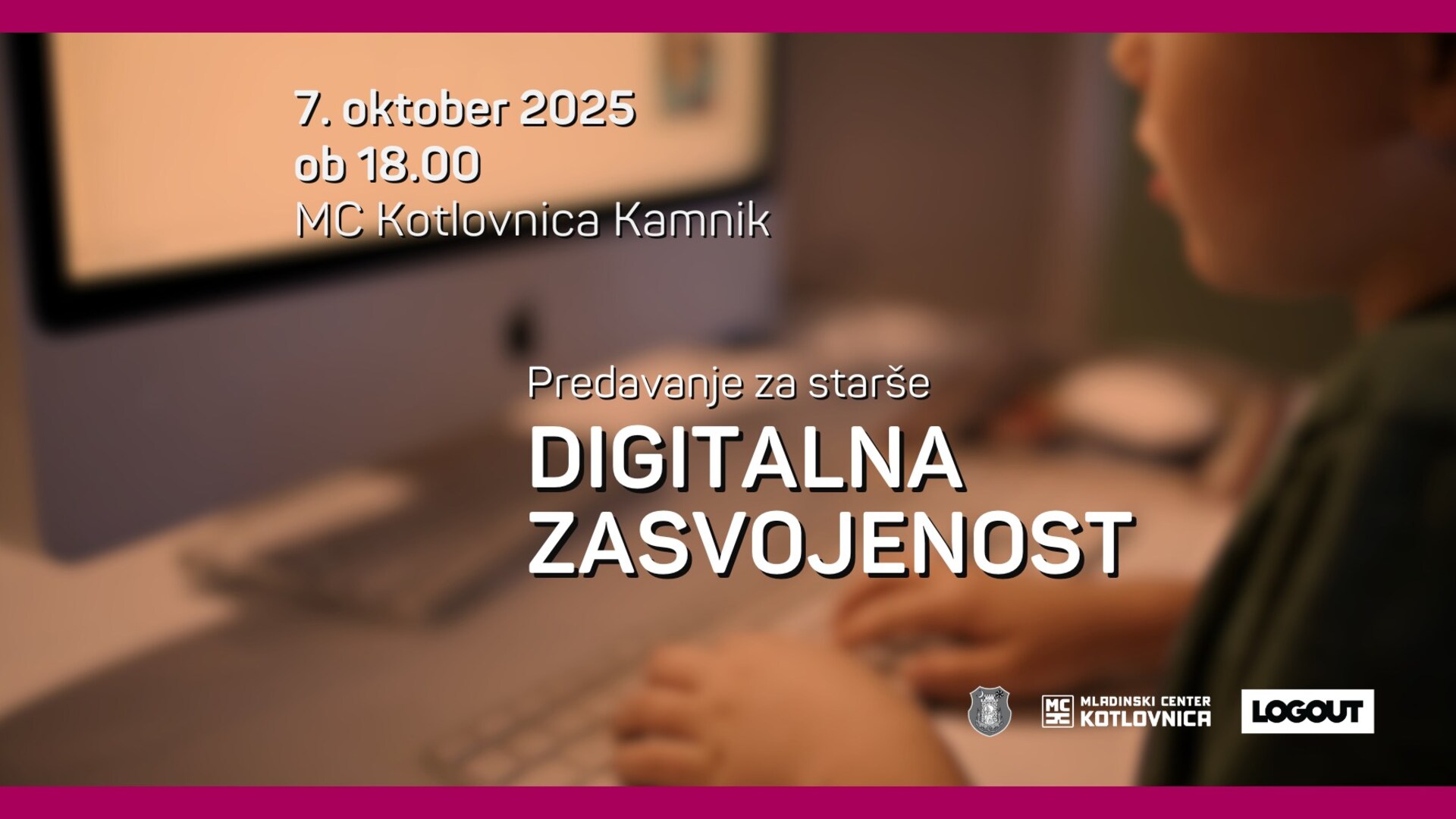 Najprej teoretično in nato skozi konkretne primere Centra Logout predstavimo, kako nastane problematična raba digitalnih naprav pri otrocih in mladostnikih, kateri so zgodnji opozorilni znaki in razlike med uravnoteženo uporabo, prekomerno uporabo in zasvojenostjo. Govorili bomo tudi o posledicah, ki jih problematična raba prinaša.