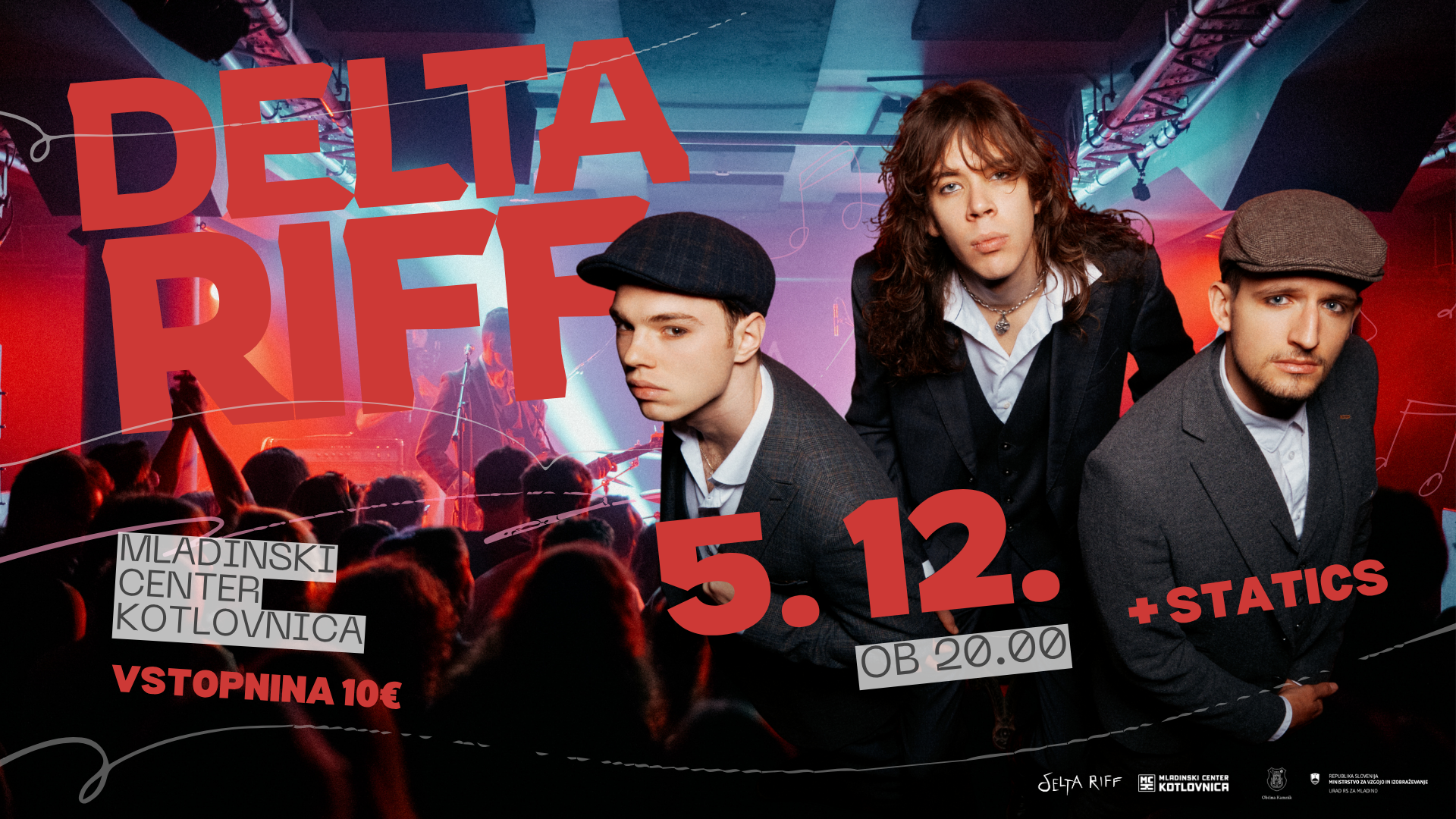 Slovenski stoner – blues – rock'n'roll trio Delta Riff nadaljuje svojo pot na visokih obratih. Po seriji eksplozivnih koncertov, odmevnih singlov in izidu prvenca 'Klic v neznano!' fantje lahko tokrat pridejo tudi v vaše mesto!